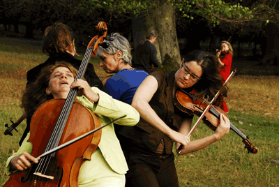 das "erste improvisierende streichorchester" ist ein ensemble von musikerInnen aus der gesamten brd, aus italien und der schweiz, das seit 1984 an neuen musikalischen möglichkeiten für streicher arbeitet.